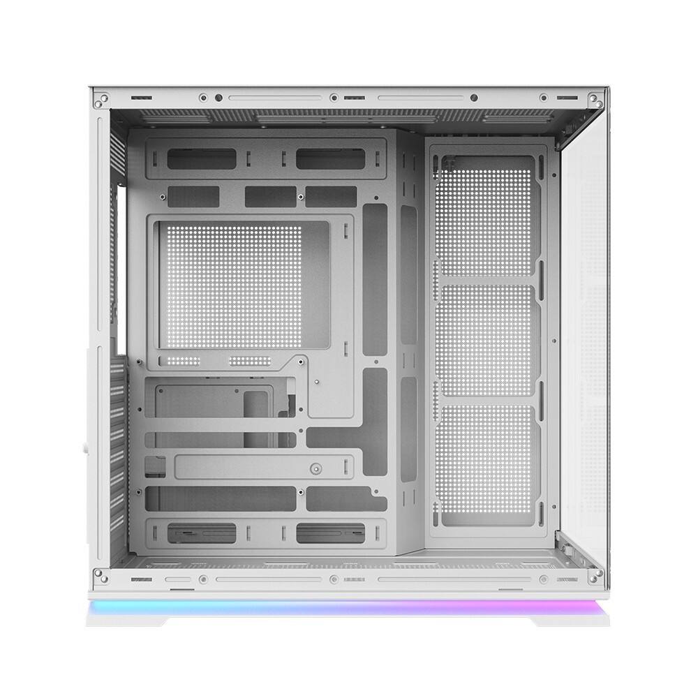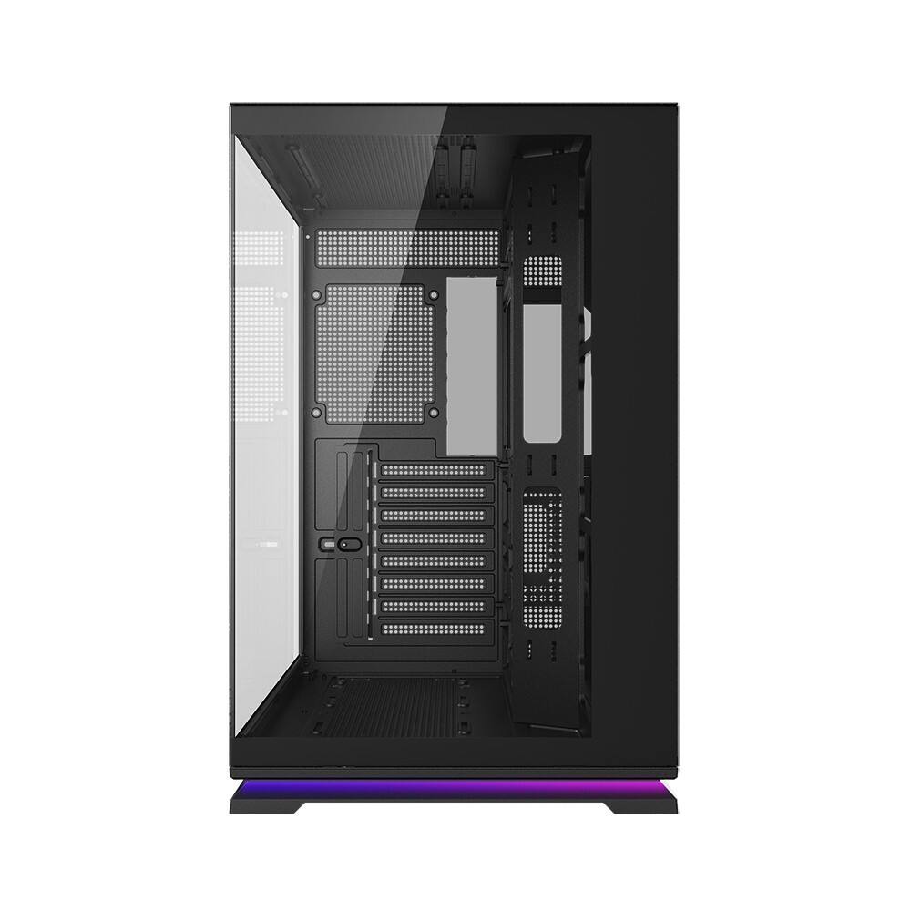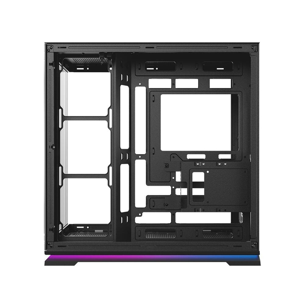 - A spacious rear compartment with pre-installed Velcro straps and routing holes makes cable organization effortless, ensuring a clean front-facing appearance.