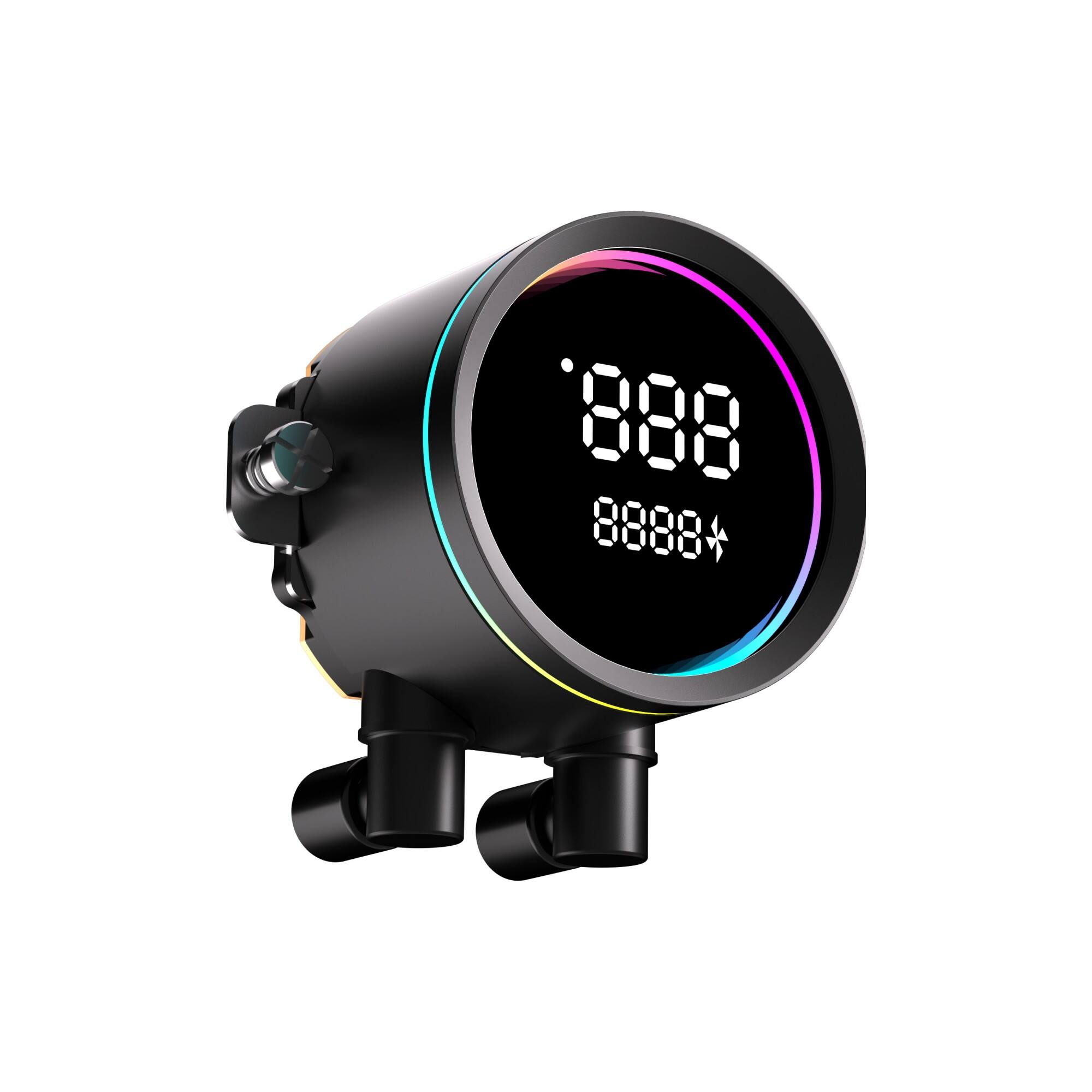 - Hoogwaardige en draaibare ronde pompoplossing met dynamische ARGB-halo-verlichting aan de zijkanten