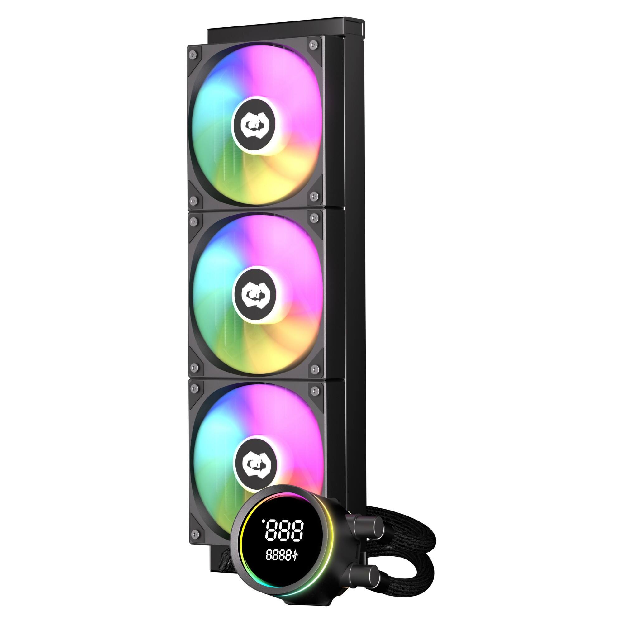 - ARGB-vanen, digitaal scherm op de pomp